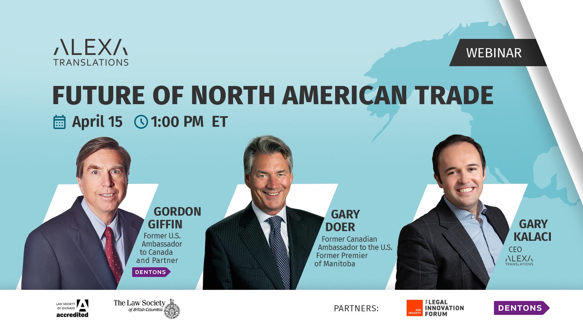 Cette discussion réunit des chefs de file ayant une expérience directe de la conception de la politique commerciale nord-américaine et agissant à titre de conseillers en la matière, soit Gary Doer, ancien ambassadeur du Canada aux États-Unis, et Gordon Giffin, ancien ambassadeur des États-Unis au Canada et associé chez Dentons.